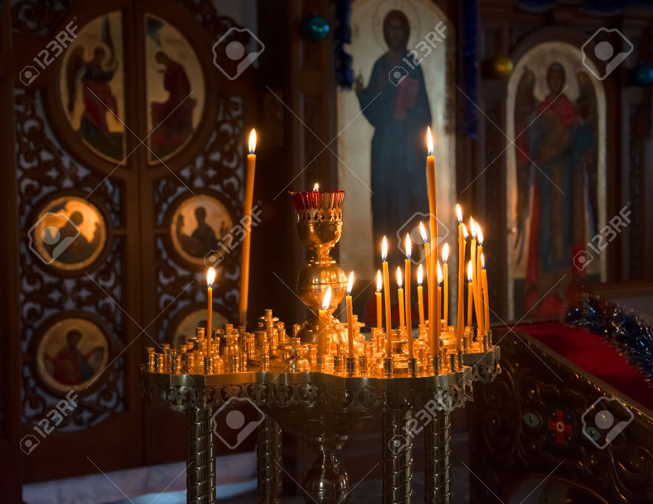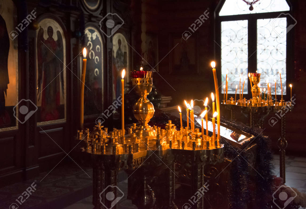 Candles In Front Of Icons In The Orthodox Church Decorated For Stock Photo Picture And Royalty Free Image Image 25421450 from previews.123rf.com