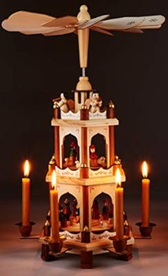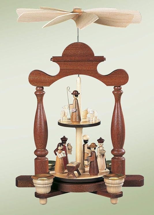 When candles are lit underneath the fan the heat turns the disks at the bottom, ornamented with wise men and sheep moving around the nativity scene. With a selection of at least 30 christmas pyramids always available. What's christmas like in germany?