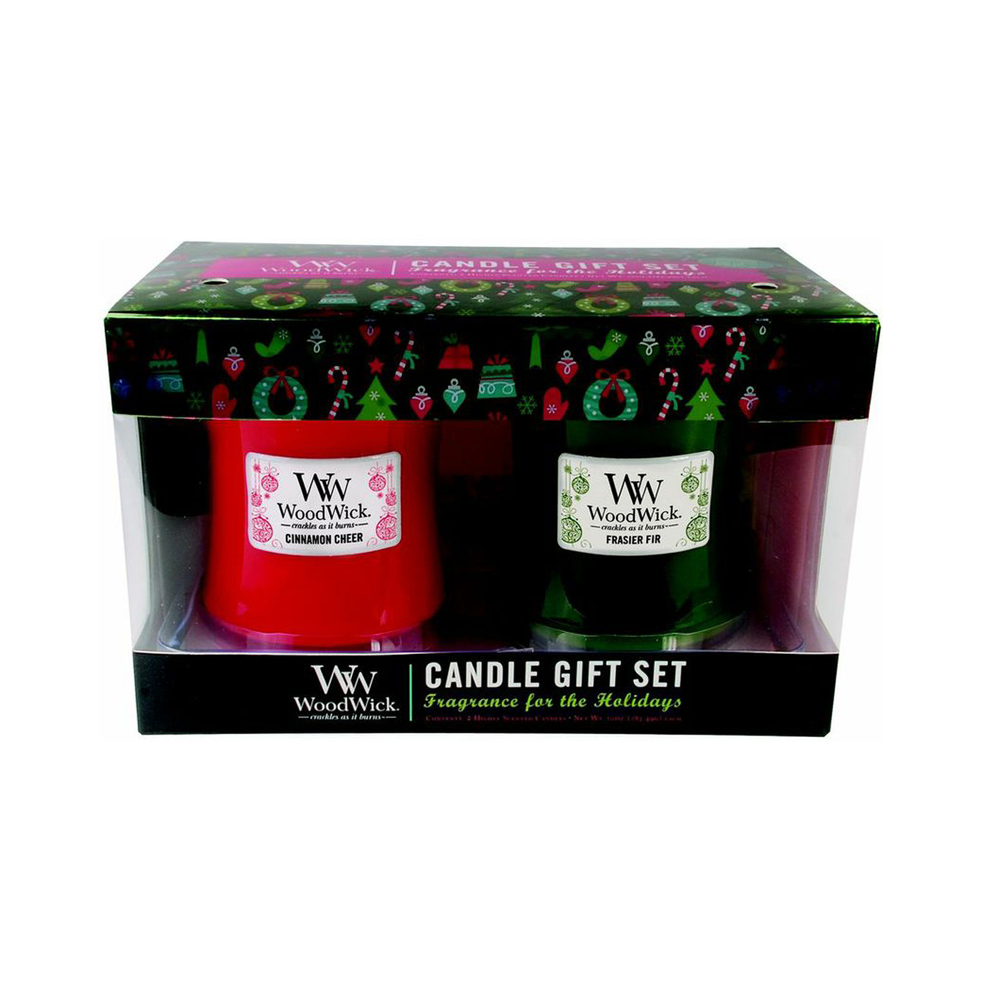 Woodland wonder red christmas woodwick medium candle shade. Set includes frasier fir and cinnamon cheer absolutely amazing smells.last forever and the price was outstanding.i can honestly say i havnt ever came across a woodwick. Woodwick large hourglass scented candle in cinnamon chai.