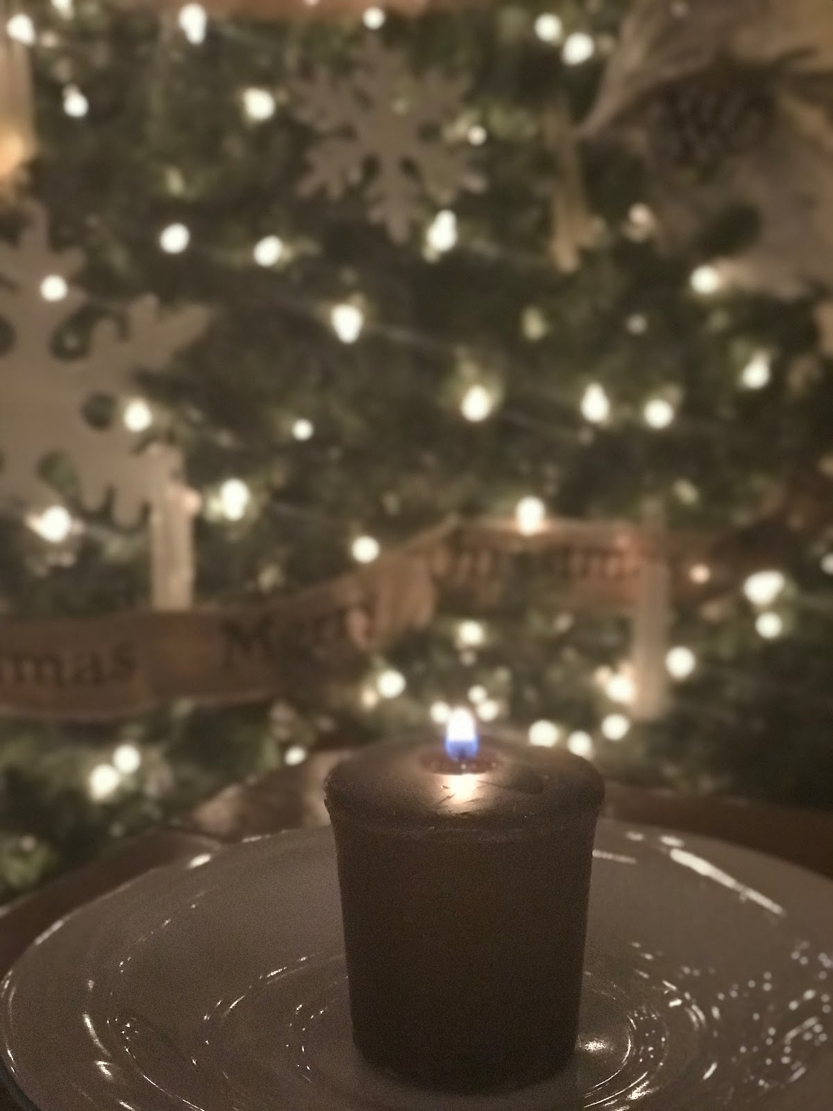 Pictures. Yankee candle wedding day votive candle. It smells like a christmas tree (which is important when you have a fake one!) with just the slightest hint of orange and spices.